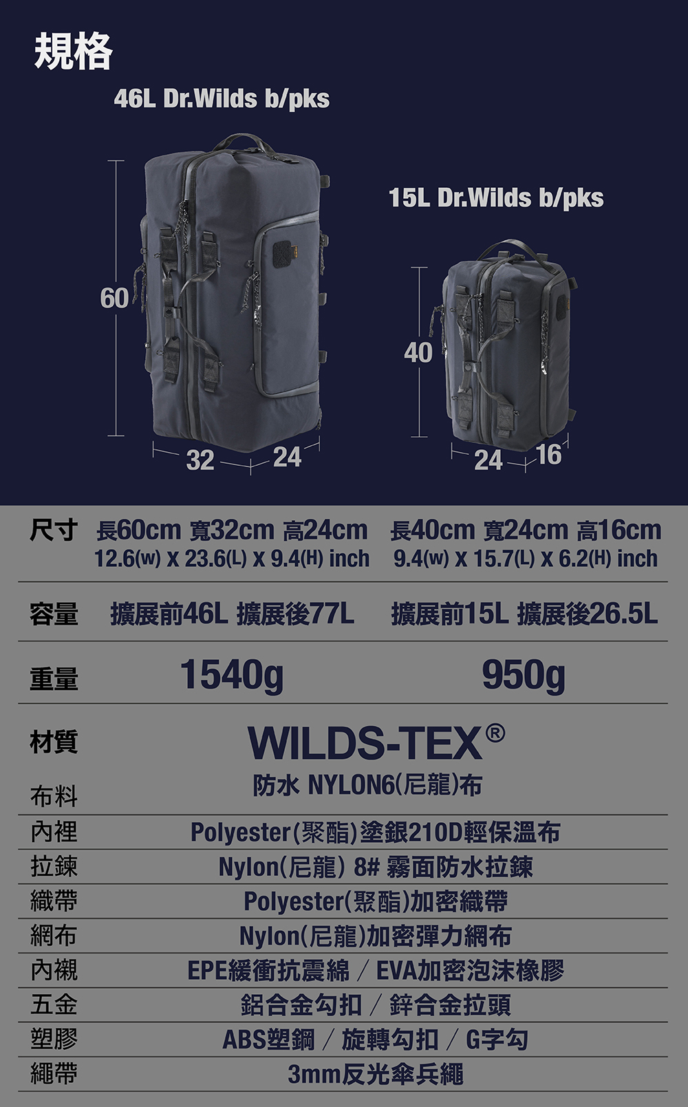 布料:WILDS-TEX® 高強度100%Nylon6 70D*160D