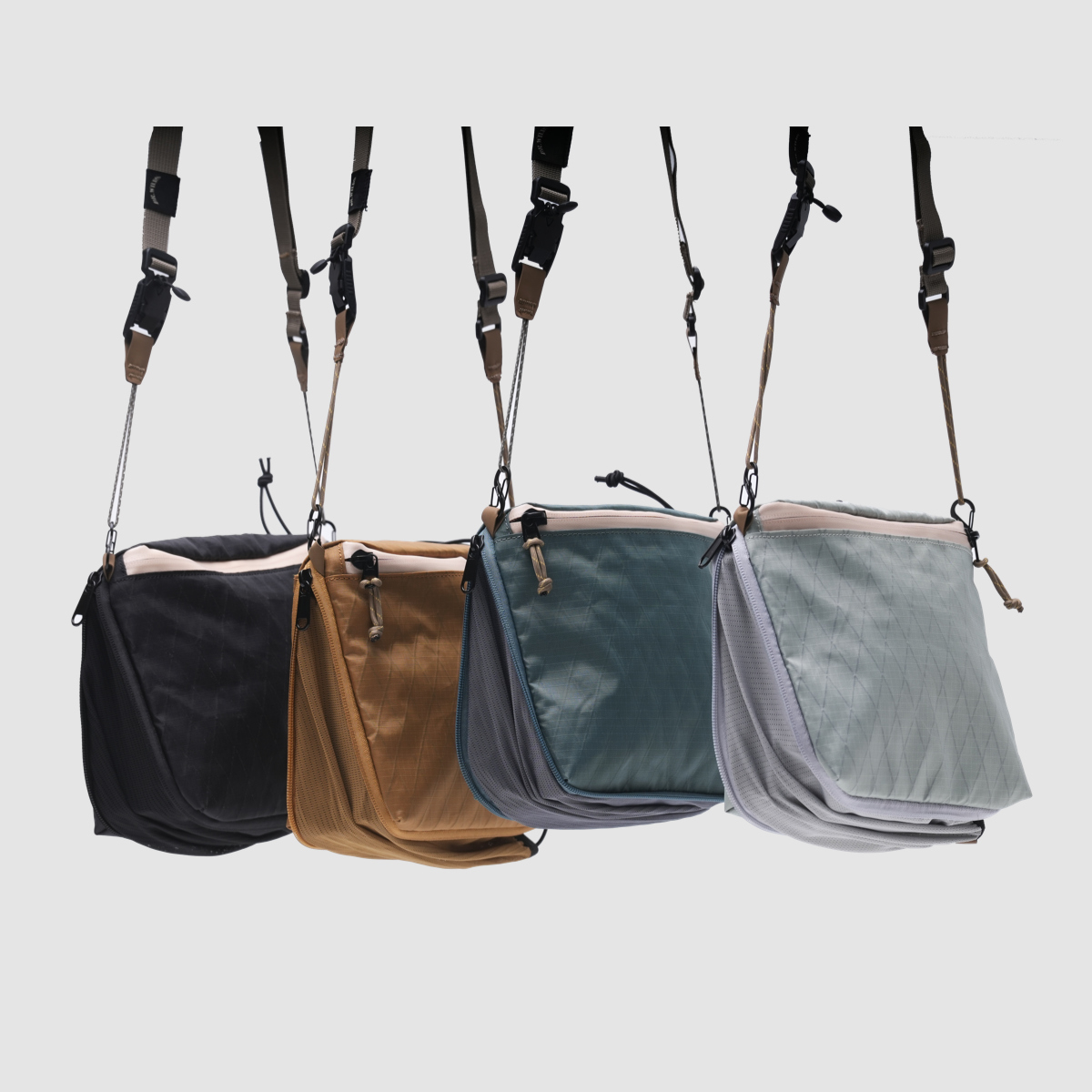 隨身包的設計有別於一般平面式小包,可擴展底部容量變成錐形的立體空間,能容納較厚的物品。背面快取口袋可方便臨時取物,不論是在行進間吊掛胸前或者斜背使用,都能帶來隨時取物的便利性,是戶外活動必備的包款。