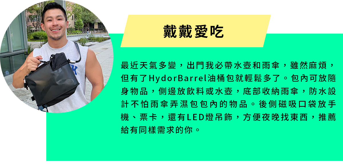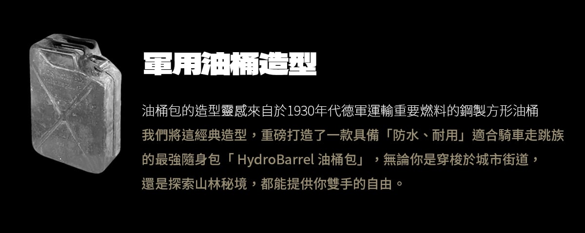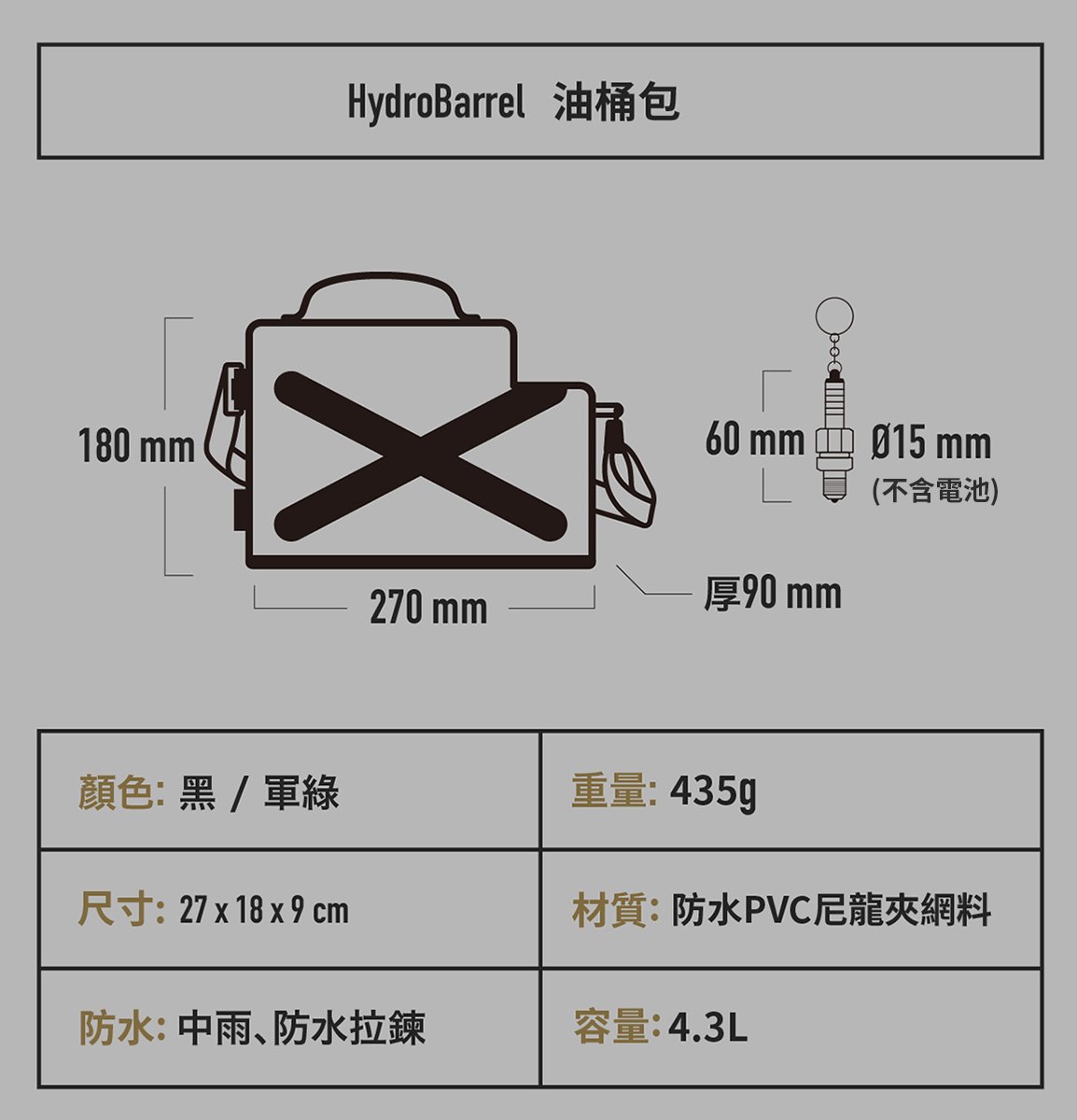 油桶包重量435公克,減少負擔,讓你行動更加靈活。