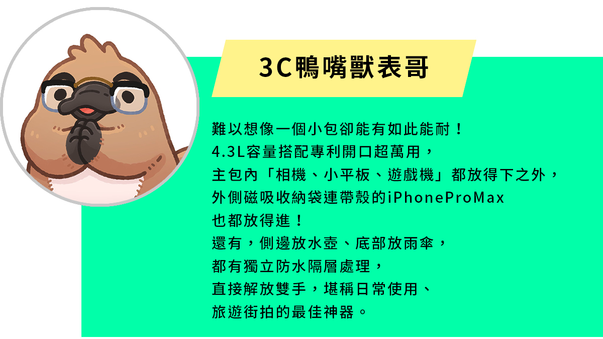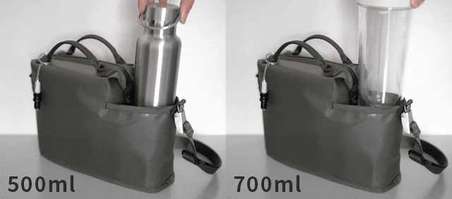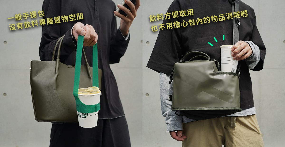 ▲ 這是一款設計給有攜帶水瓶和飲料需求的隨身包,無論穿搭、收納、取放飲料,都能輕鬆搞定,雙手自由,保持帥氣風範。