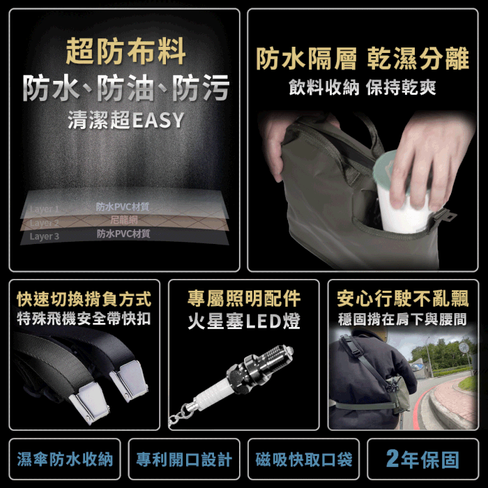 包包配備了飛機安全帶快速拆卸設計,即使帶著安全帽,也能讓你隨時隨地輕鬆取包,不浪費任何時間,完美應對日常生活。