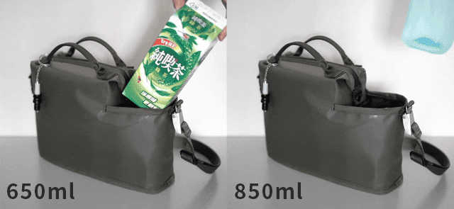 包包在未使用飲料隔層的收納情況下,開口可放入寬度大於195MM的遊戲機(102x242X14mm)在包內。