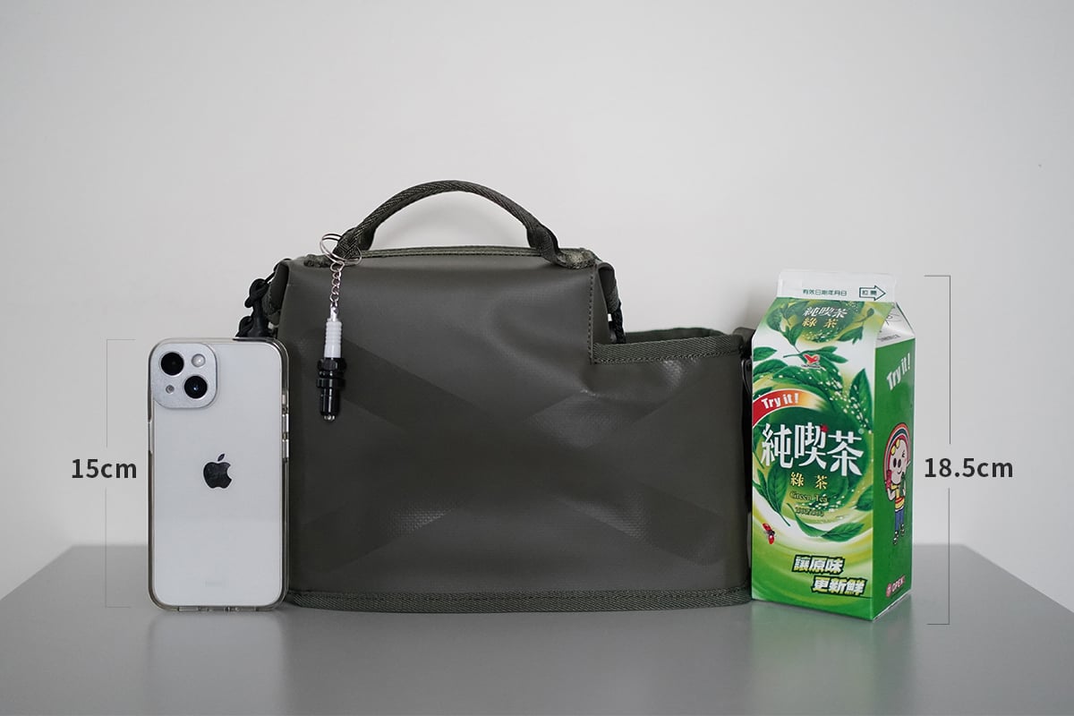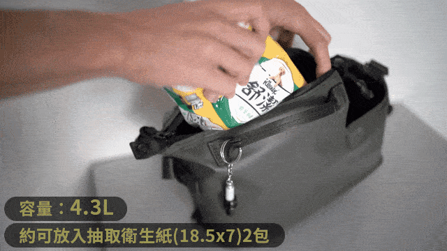 油桶包的容量可以放兩包衛生紙,日常出門攜帶所需的物品能輕鬆收納。
