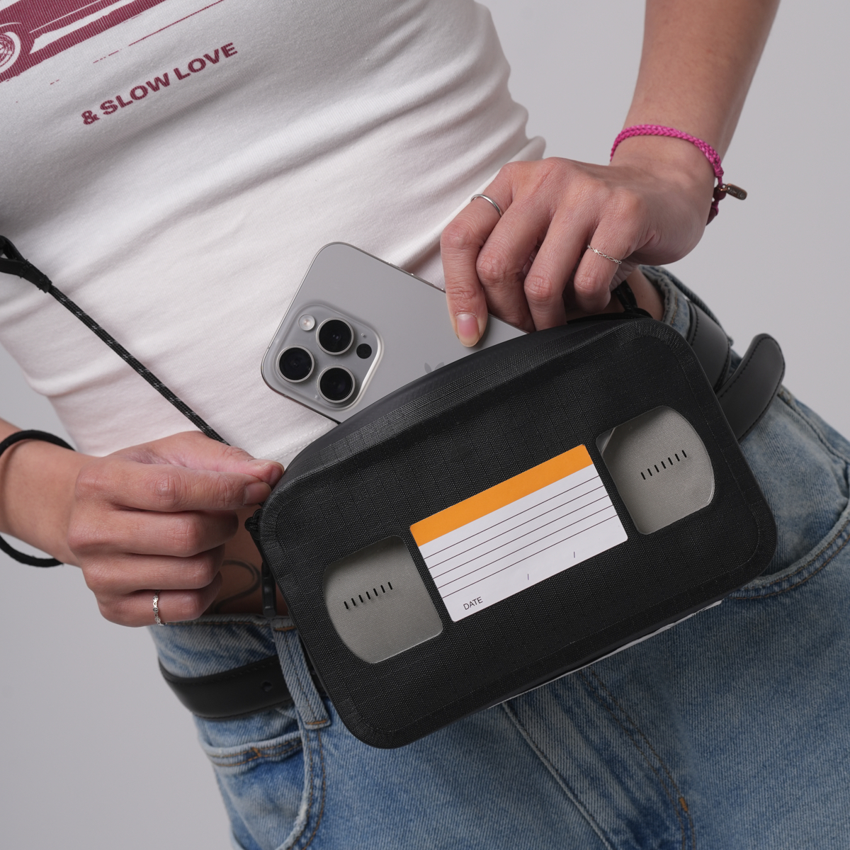 2025 年,我們發明了「錄影袋」——一種給現代生活設計的防水隨身收納包。它不是拿來「播放」,而是讓你隨身「攜帶」與「拍攝」;不是儲存磁帶,而是承載手機與你的日常隨身物品。