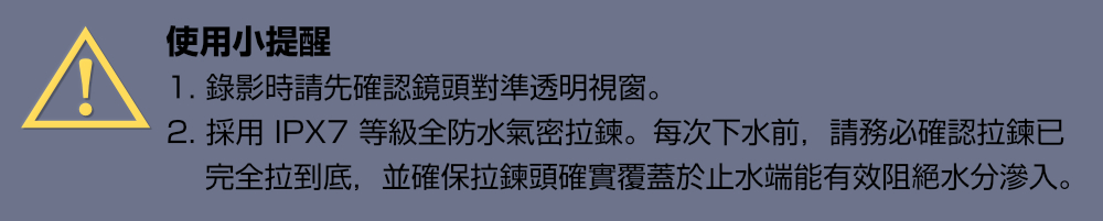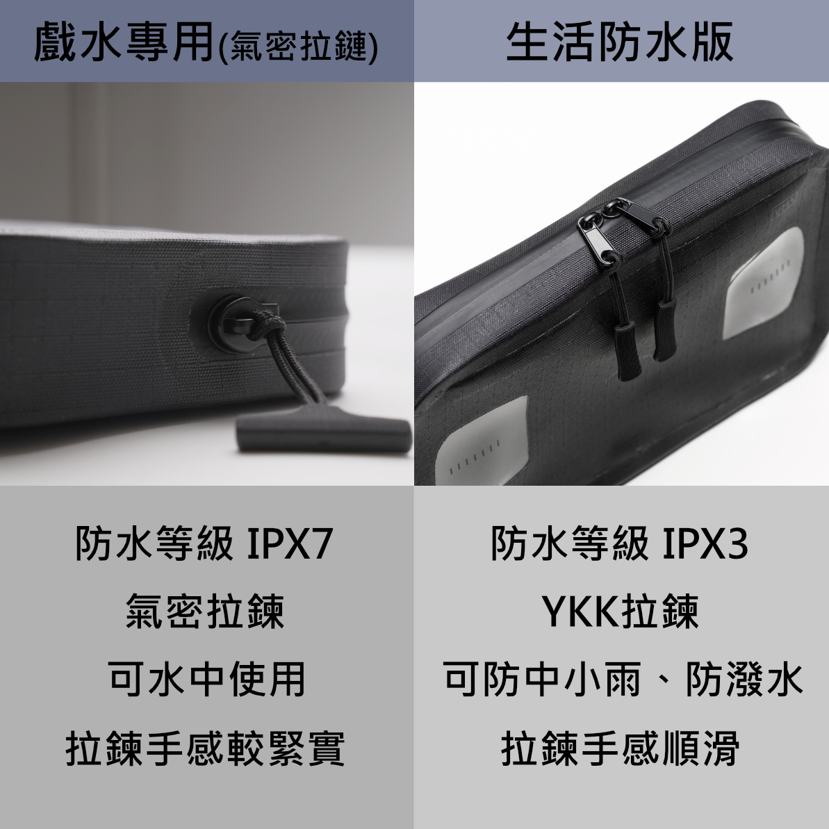 戲水專用版(氣密拉鍊),可以在水下1米使用30分鐘。