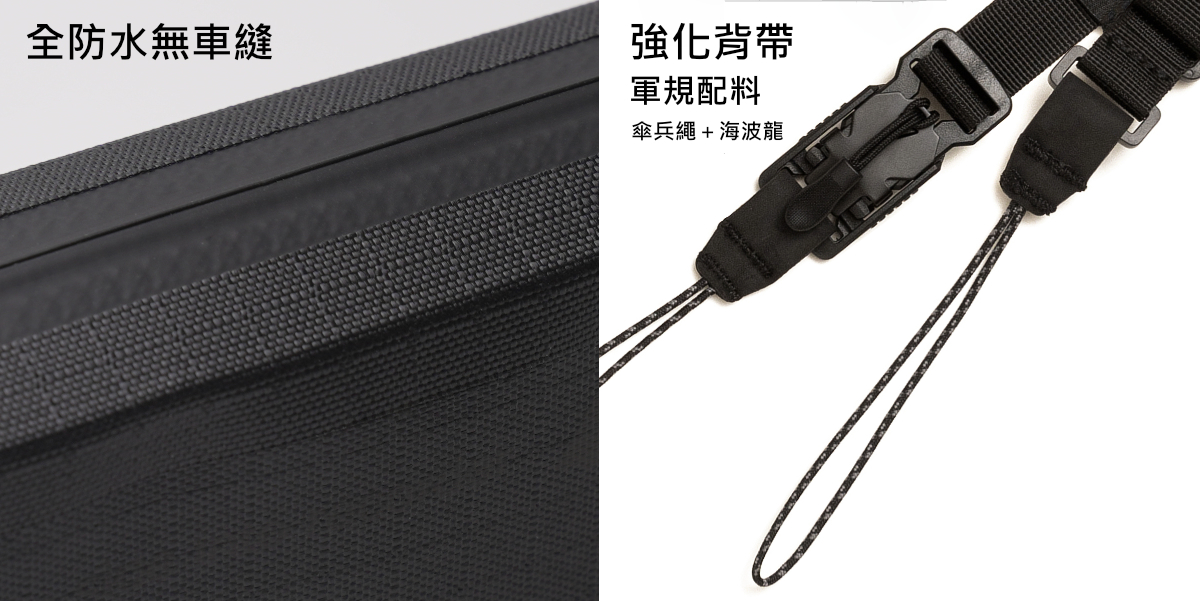 採用 IPX7 等級全防水氣密拉鍊,高周波無縫車縫,全包不會進水。